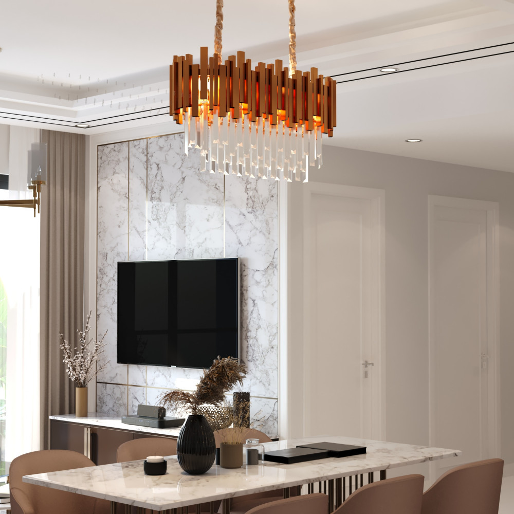 ثريا مستطيلة كريستال لون ذهبي لديكورات الإضاءة الذهبية الحديثة التي تعكس رقي التصميم، وتضفي أجواءًا هادئة في المكان.