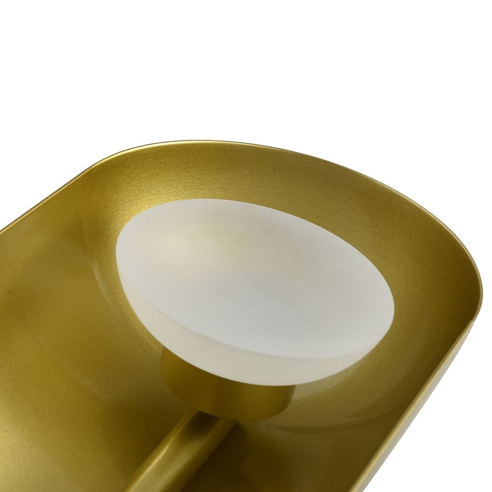 إنارة جدارية عصرية بلمسة ذهبية مع إضاءة ليد صفراء دافئة، تمنح الغرفة أجواء هادئة ومريحة للعين، وتناسب غرف النوم والمعيشة ومجالس الضيوف.