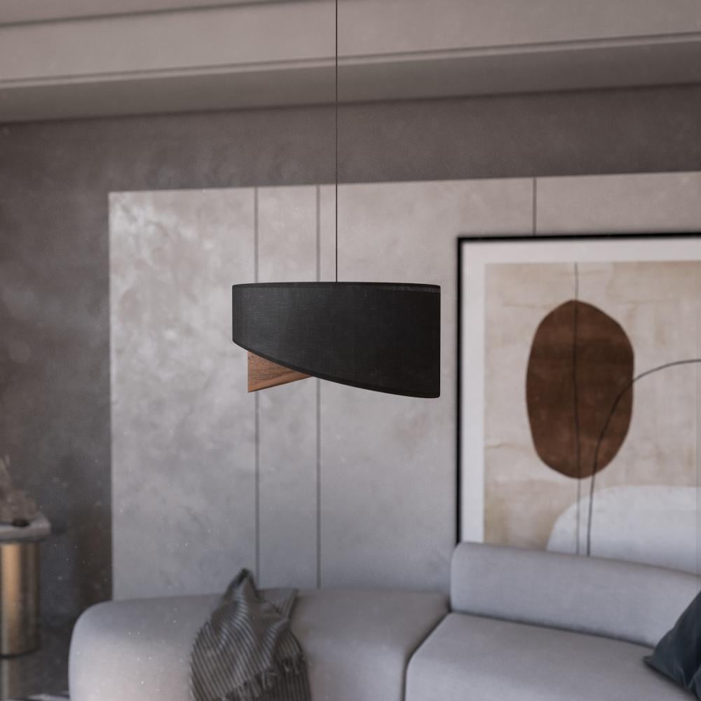 إضاءة خشبية معلقة لون اسود، يمكنك تنسيق ثريا علاقي مفرد لغرف المكتب هو إضافة مثالية لديكور المكان، تزيده الإنارة الديكورية جمالًا، وتخلق الأجواء الدافئة المناسبة للغرفة.