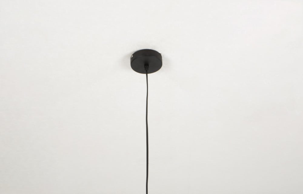 إضاءة مفردة معلقة سوداء تستخدم لتوضع أعلى جزيرة المطبخ في مجموعة ثلاثية أو ثنائية مميزة، فهي تتميز بتصميم بسيط يليق بالمطابخ المودرن.