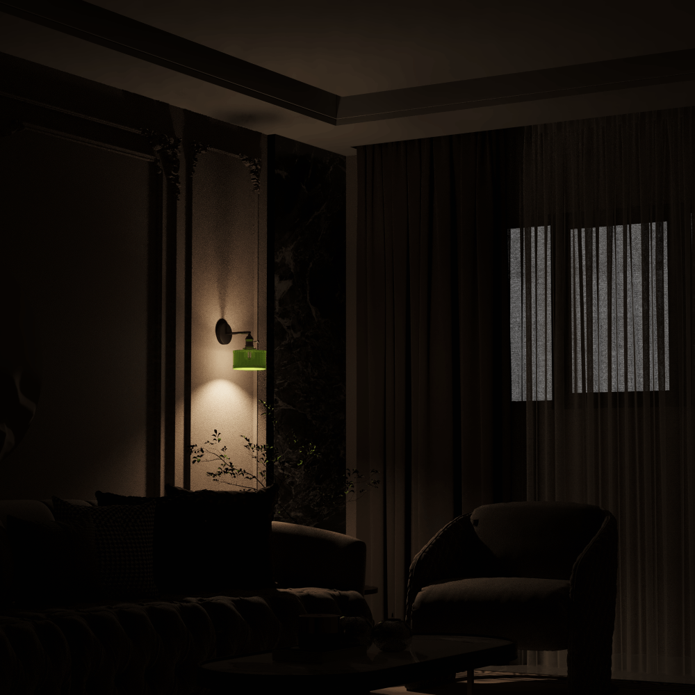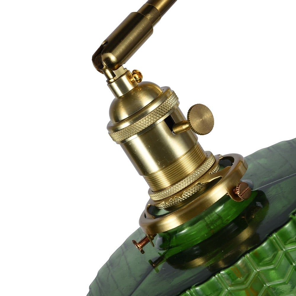 تضيف إنارة جدارية داخلية كلاسيك E27 زجاج أخضر لمسة فخامة وأناقة إلى غرفة الجلوس بفضل اللون الأخضر العميق للزجاج مع القاعدة المعدنية الذهبية الفاخرة التي تمنح المكان إحساسًا دافئًا ومظهرًا راقيًا.