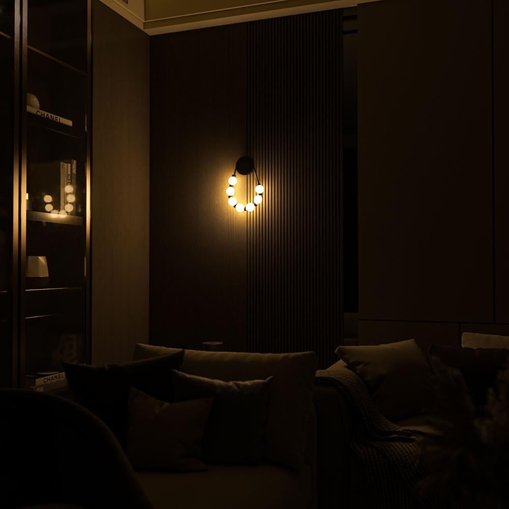 إضاءة جدارية تعمل كقطعة ديكورية أنيقة، فهي تمتلك شكل عقد أو سلسال لولي يضيء بإضاءة ناعمة مميزة تليق بمساحتك.