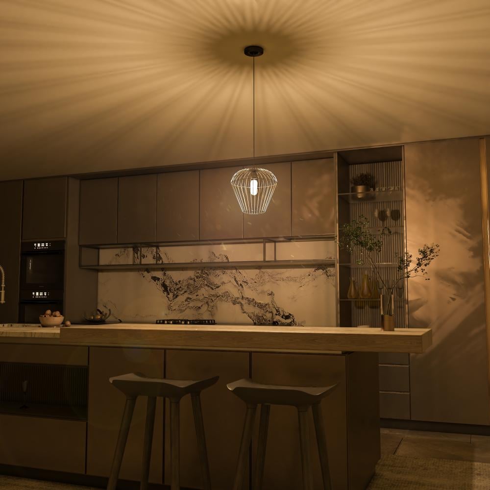 التصميم العملي من معلقة سقف ليد موفرة للكهرباء يناسب احتياجات المساحات التجارية كالمطاعم، حيث يضمن الشكل المثالي في المكان، ويستهلك أقل كمية كهرباء.