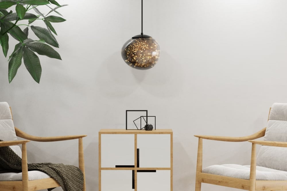 إنارة معلقة من الزجاج الرمادي موفرة للطاقة، تتميز بإضاءة ليد مدمجة بها تستهلك قدر قليل من الطاقة، وتمنحك إنارة مثالية منتشرة في مساحتك.