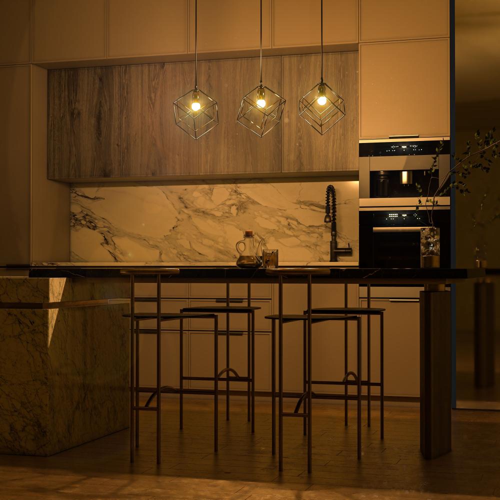 تضفي إنارة معلقة داخلية مكعبين ذهبي أسود من يوكاندل لمسة فاخرة من الأناقة العصرية على ديكور الغرفة.