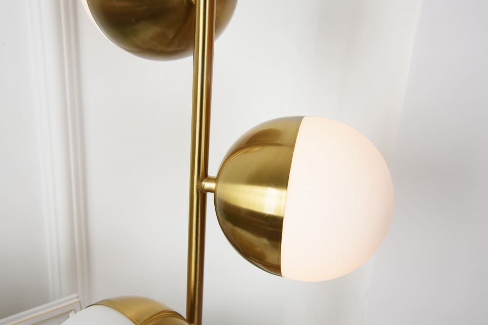 ينتشر الضوء المنبعث من اباجورة ذهبية لامعة بـ 3 كرات مثلجة توهجًا دافئًا من خلال الكرات الزجاجية المثلجة باللون الأبيض حيث تستطيع الحصول من خلالها على مظهر مثالي وساحر يلازمك على الدوام في المجالس او غرفة المعيشة او أي مساحة ترغب في جعلها ساحرة و براقة.