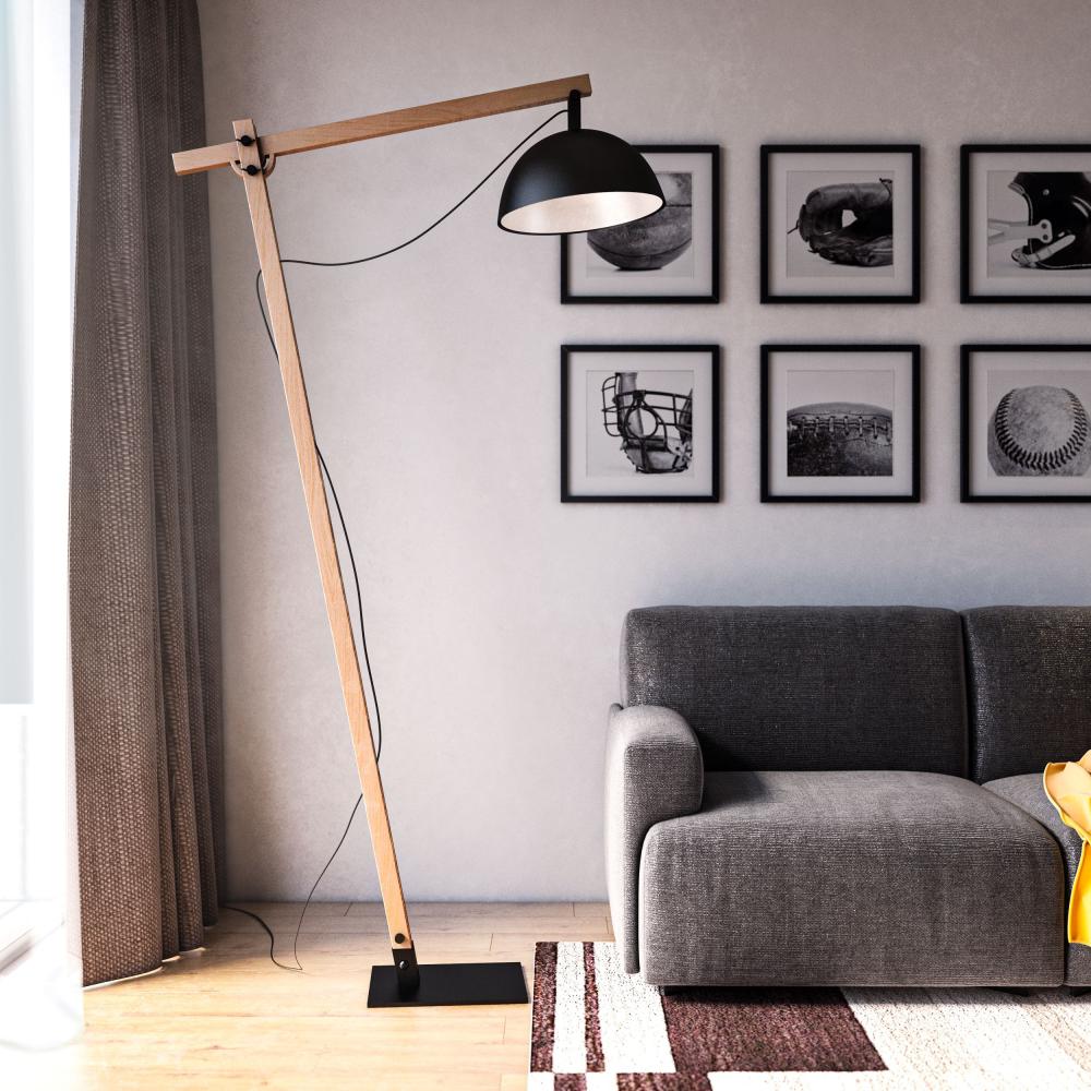 أبجورة أرضية طويلة تجمع بين الخشب الطبيعي والمعدن بتصميم عصري أنيق، تضيف لمسة ديكورية مميزة للمكان. تمنحك إضاءة دافئة وموزعة بشكل مثالي لتناسب غرف المعيشة أو المكاتب أو زوايا القراءة.