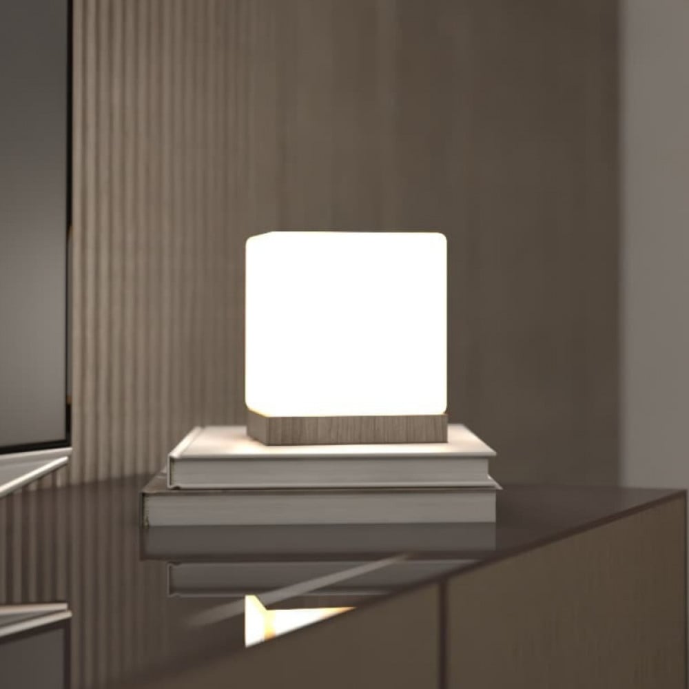 متجر فانوس يقدم لكم اباجورة طاولة مربعة بقاعدة خشبية مصنوعة من أجود أنواع الزجاج الأبيض المشتت للإضاءة وذات تصميم هندسي حديث وبسيط تخلق إضاءة أنيقة وتوهجًا جميلًا وتمتاز بأنها طويلة الأمد وموفرة للطاقة حيث يبلغ عرض هذا الأباجورة مربعة الشكل 13 سم وارتفاعها 15 سم مما يجعلها مناسبة تمامًا للاستخدام في أي مساحة صغيرة.