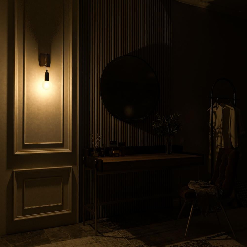 ابليك مودرن جداري كريستال ومعدن مع حبل سهل التحكم في طوله بما يناسب العلاقية، وديكور المكان، والشكل العام للغرفة.