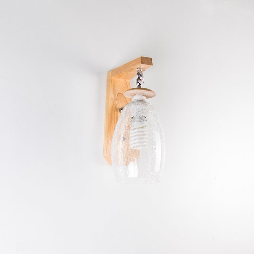 إضاءة جدار خشبية مفرد مع زجاج مزخرف راقي يحمل بداخله لمبة الإضاءة التي تصنع أجواء ديكورية في غاية الجمال، وتناسب البيوت العصرية