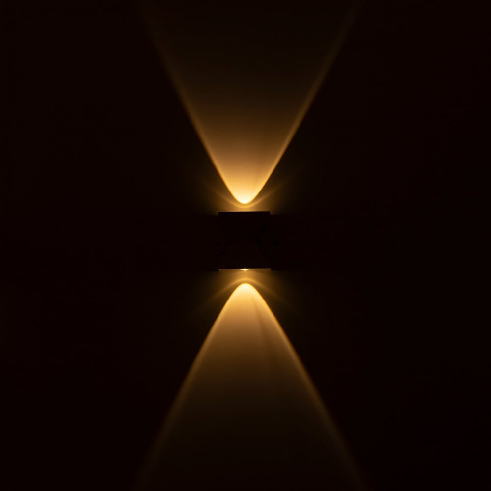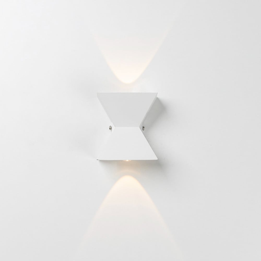 حسّن مساحتك الخارجية مع مصباح الحائط المزود بمصباحين LED مثلثي الشكل داخل إطار أبيض أنيق.