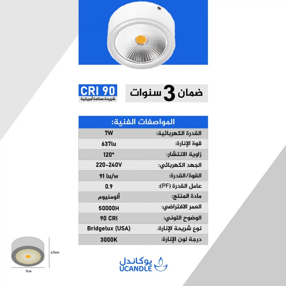 أفضل تصميم لطش خارجي 7 وات قاعدة بيضاء إنارة صفراء مع درجة حماية مثالية وضمان قوي لإضاءة واسعة الانتشار وبدرجة وضوح لوني ممتازة تنير المساحات الخارجية.