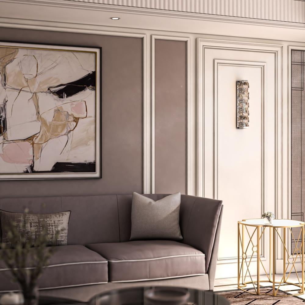 التصميم النيو كلاسيكي من الإنارة الجدارية يمتاز بدرجات إضاءة مختلفة من اللون الأصفر، والكريمي، والأبيض لخلق أجواءًا ديكورية مميزة مع كفاءة تشغيل تدوم لساعات طويلة.