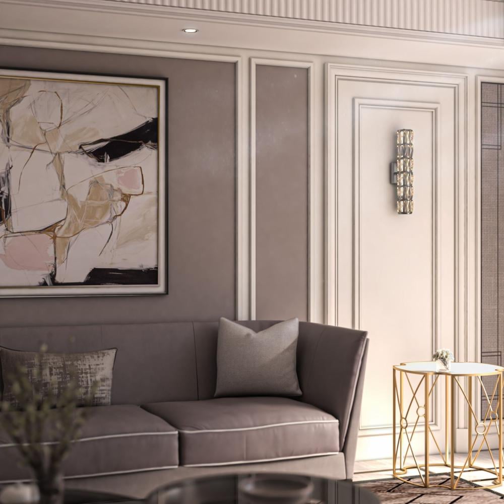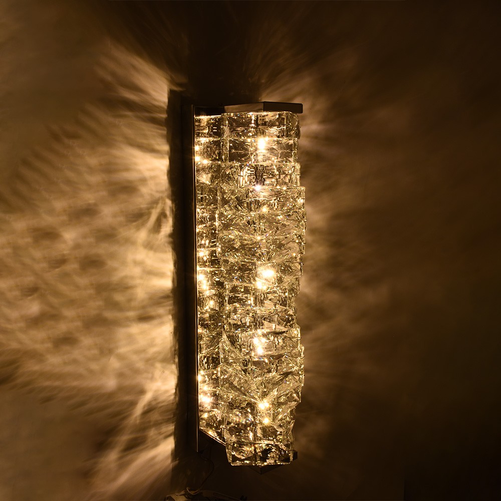 انارة مستطيلة جدارية كريستال تصميم نيو كلاسيكي يوفر جوًا دافئًا ومريحًا من الإضاءة الكريستال للمنازل الفخمة.