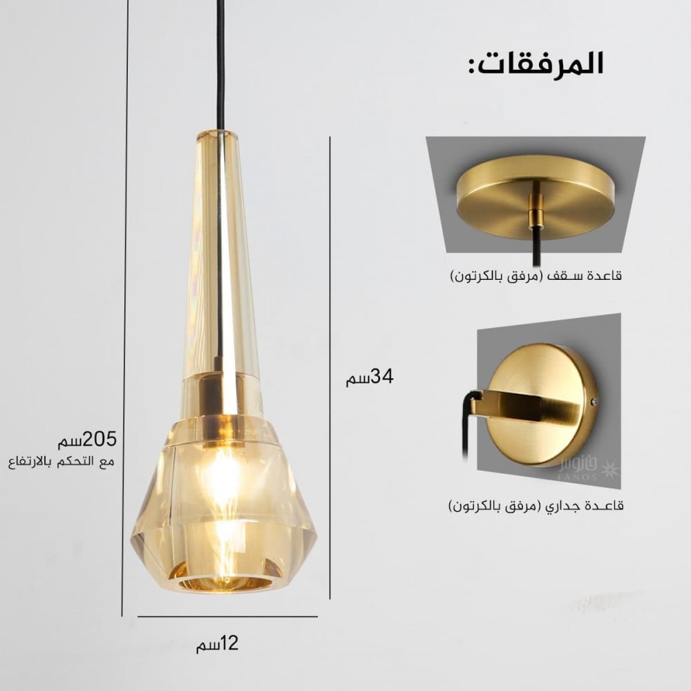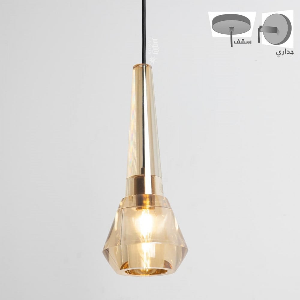 ثريا جدار وعلاقي كريستال عسلي من يوكاندل بتصميم عصري فاخر يمكن تثبيتها على الجدار أو السقف لتمنحك مرونة في الاستخدام ولمسة جمالية راقية لديكور البيت العصري.