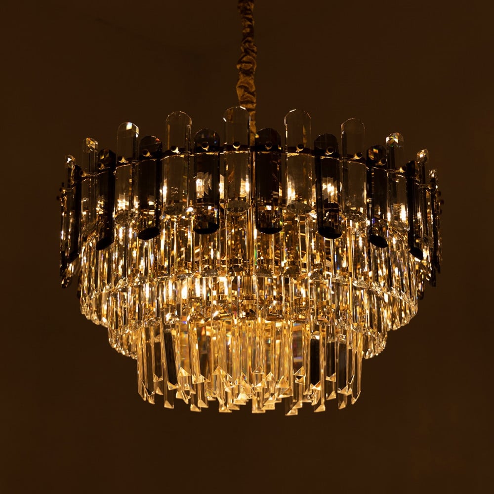 ثريا مودرن كريستال اوروبي 60 سم شكل مستدير من الزجاج اللامع متعدد الطبقات، وبألوان الزجاج الرمادي، والشفاف؛ لأناقة عصرية، وشكل جذاب.