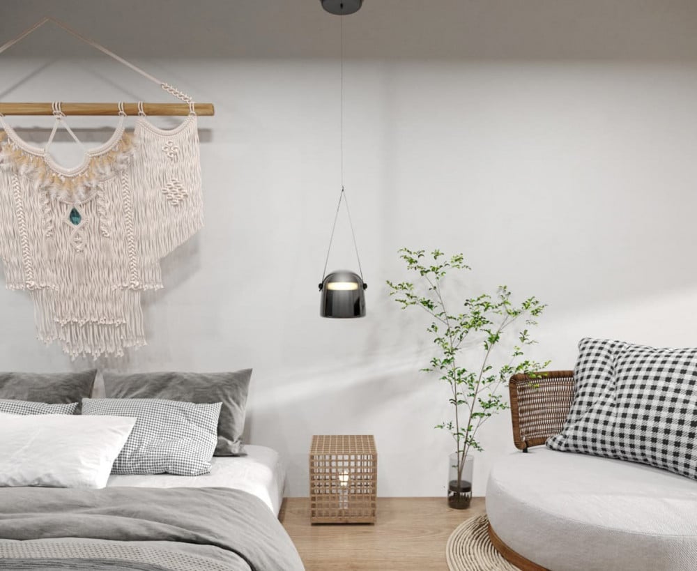 في ثريا علاقية راقية مفرد مع حزام اسود يجتمع الجمال والبساطة في آن واحد نتيجة التصميم الأنيق المصنوع بسلاسة على نصف كرة متدلية من السقف بواسطة حزام اسود مثبته فيه من الطرفين تصم بدالها لمبة ليد ذات اضاءة دافئة وناعمة فيما يأتي الزجاج المحيط باللمبة باللون الأسود الشفاف.