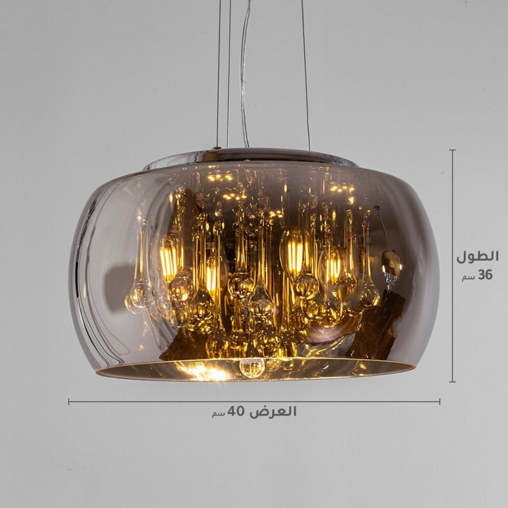 مواصفات اللمبات الديكورية لـ ( ثريا علاقي دائرية مودرن بزجاج رمادي شفاف)