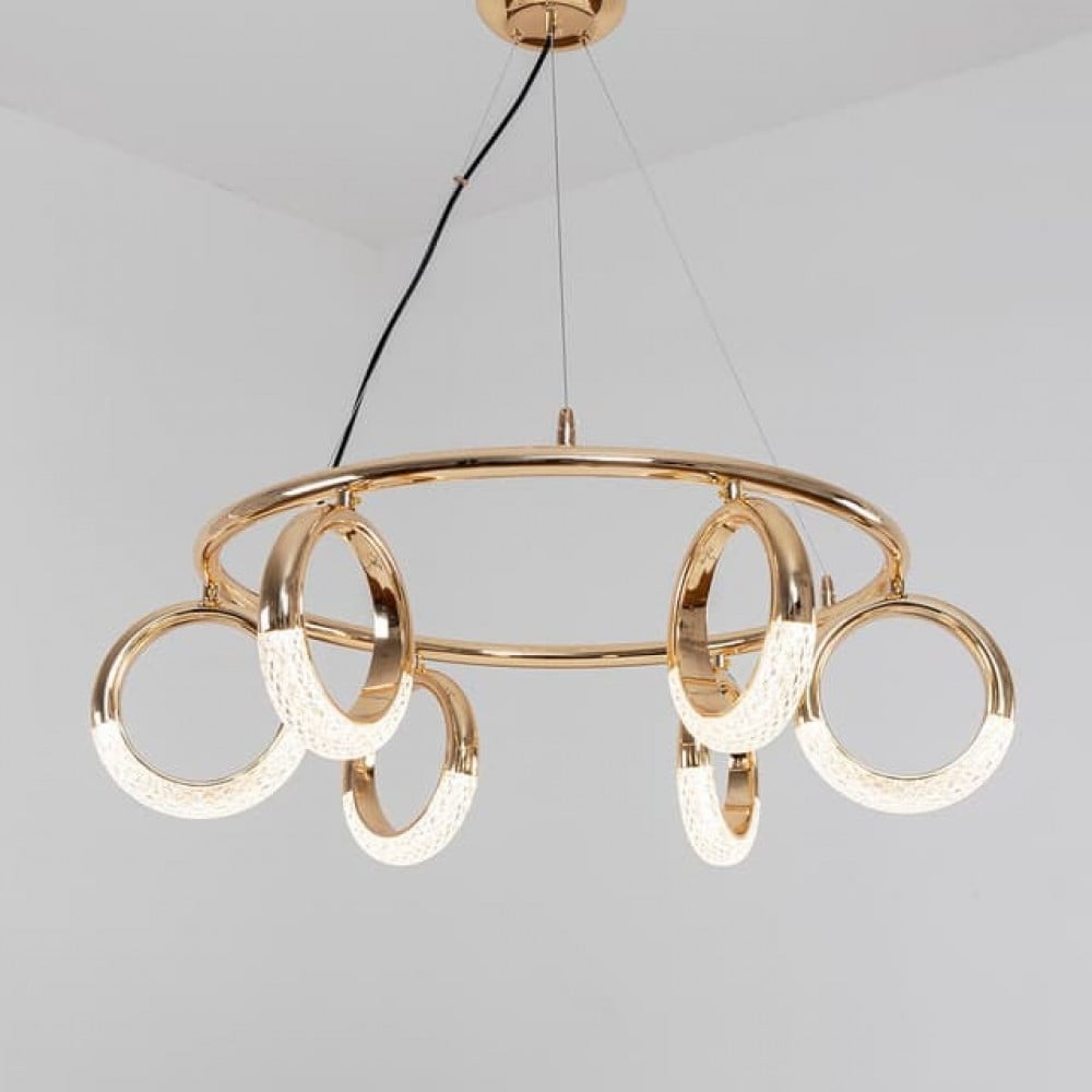 اذا كنت من عشاق الثريات العصرية في الديكور وأنماط الانارة ، نقدم لكم في متجر فانوس ثريا علاقي ذهبية بـ 6 دوائر مضيئة بتصميم راقي يتكون من ستة دوائر ذهبية باضاءة ليد.