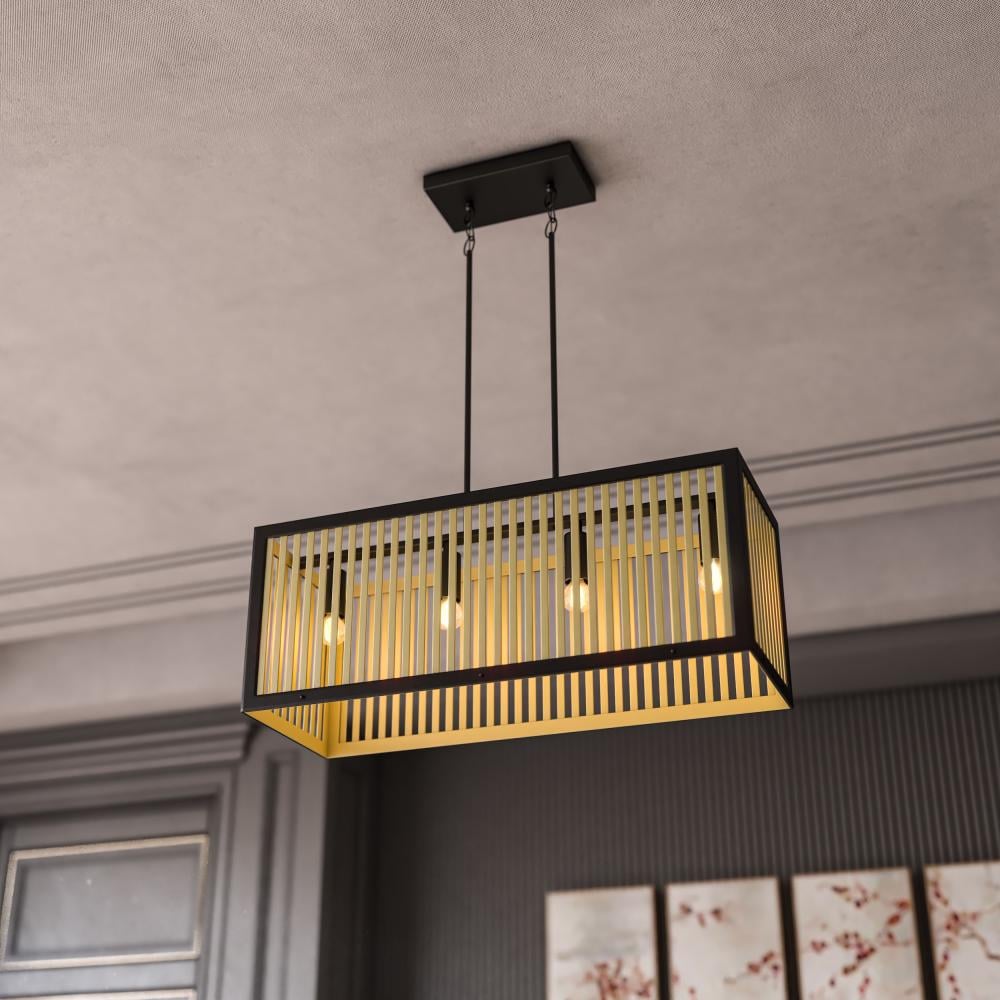 أضف لمسة من الفخامة إلى ديكور منزلك مع ثريا كلاسيك سقفية مستطيل أسود وذهبي من يوكاندل. اطلبها الآن من متجر فانوس.