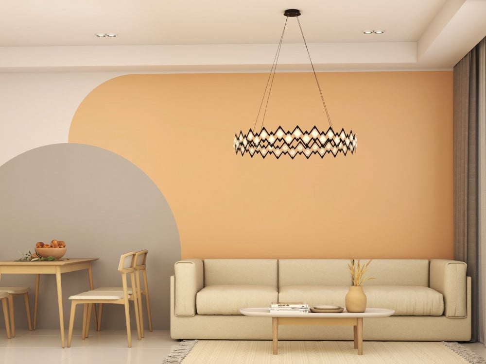 تصميم الثريا الذي يأتي بدرجة حماية عالية، والشكل الحديث الزجزاج الذي ينعكس منه درجة اللون الأصفر الهادئة التي تعمل بدرجة وضوح لوني ممتازة تجعل المكان مميزًا بالإنارة الداخلية.
