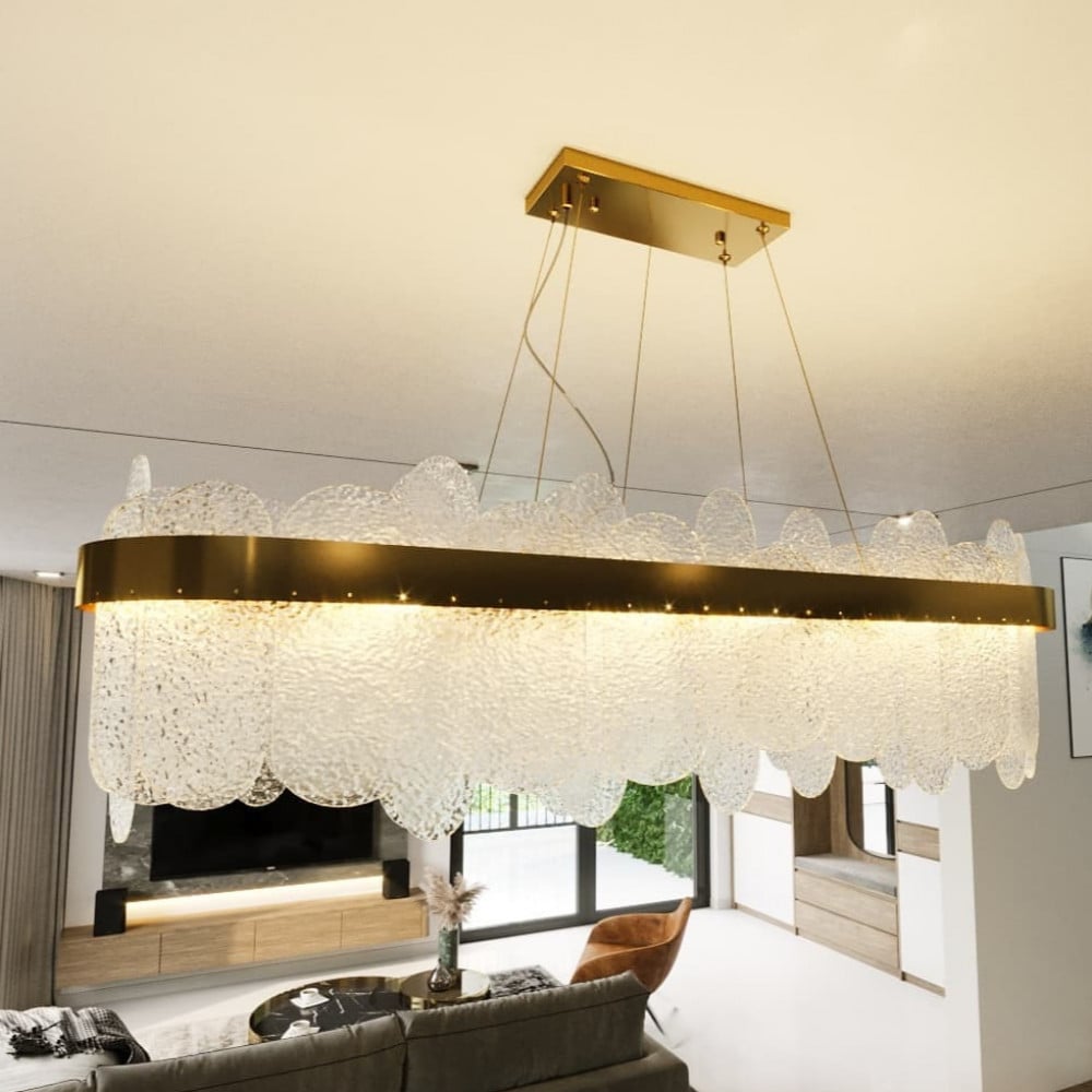 مواصفات ثريا مودرن ذهبية كبيرة بزجاج بيضاوي
