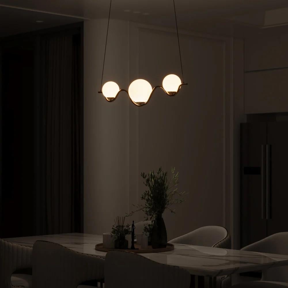 - تصميم عصري فريد بثلاث كرات زجاجية أنيقة تشبه الأقمار.