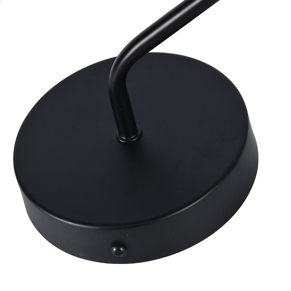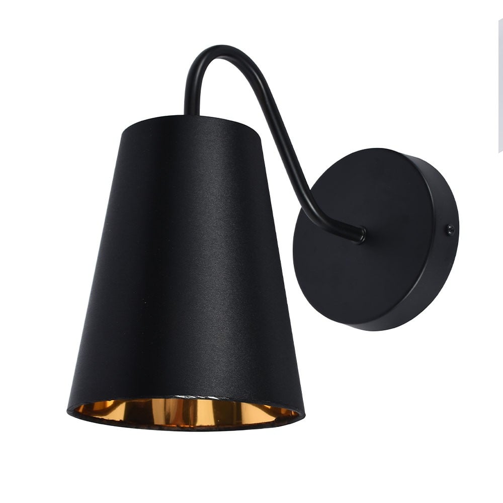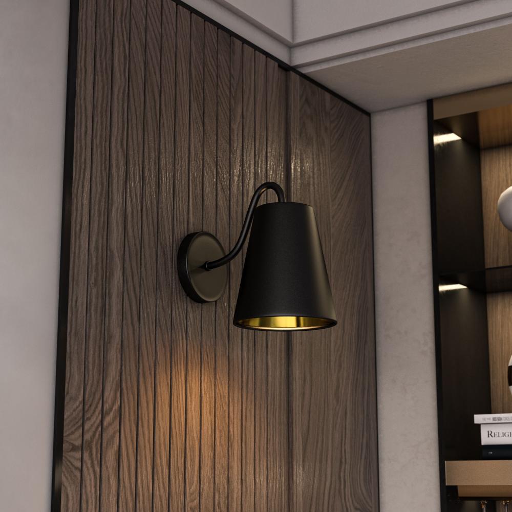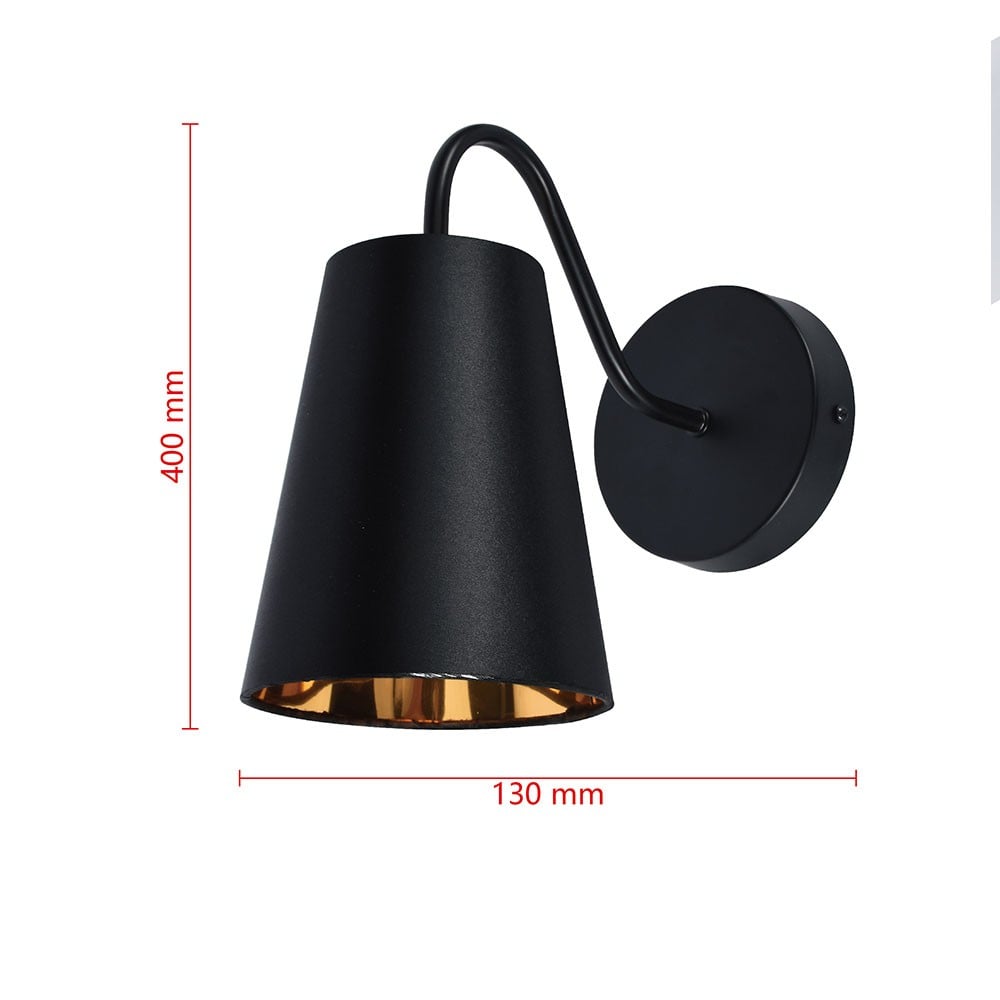 جدارية إنارة بتصميم مظلة سوداء حديث تناسب غرفة تناول الطعام، فهي تمتلك مظهر يزيد من دفء المساحة ويجعلها مريحة للجلوس وتناول الطعام.