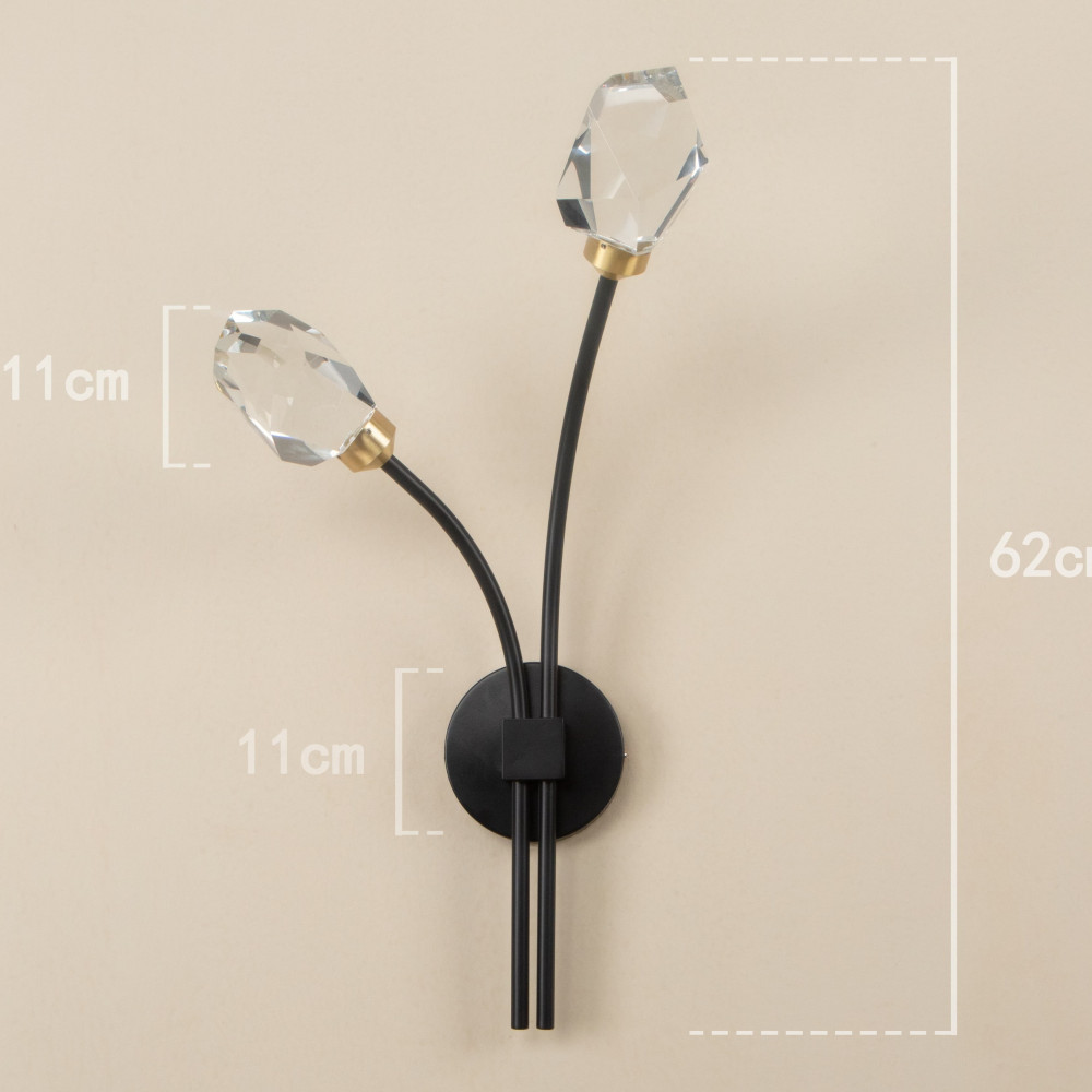 احصل على لمسة فاخرة في ديكور منزلك مع أبليك مودرن ليد مجوز أسود المصمم بذراعين مقوسين باللون الأسود مع قاعدة ذهبية وكريستالات أنيقة. يتميز بإنارة LED مزدوجة تمنح قوة إضاءة مثالية مع مظهر عصري جذاب.
