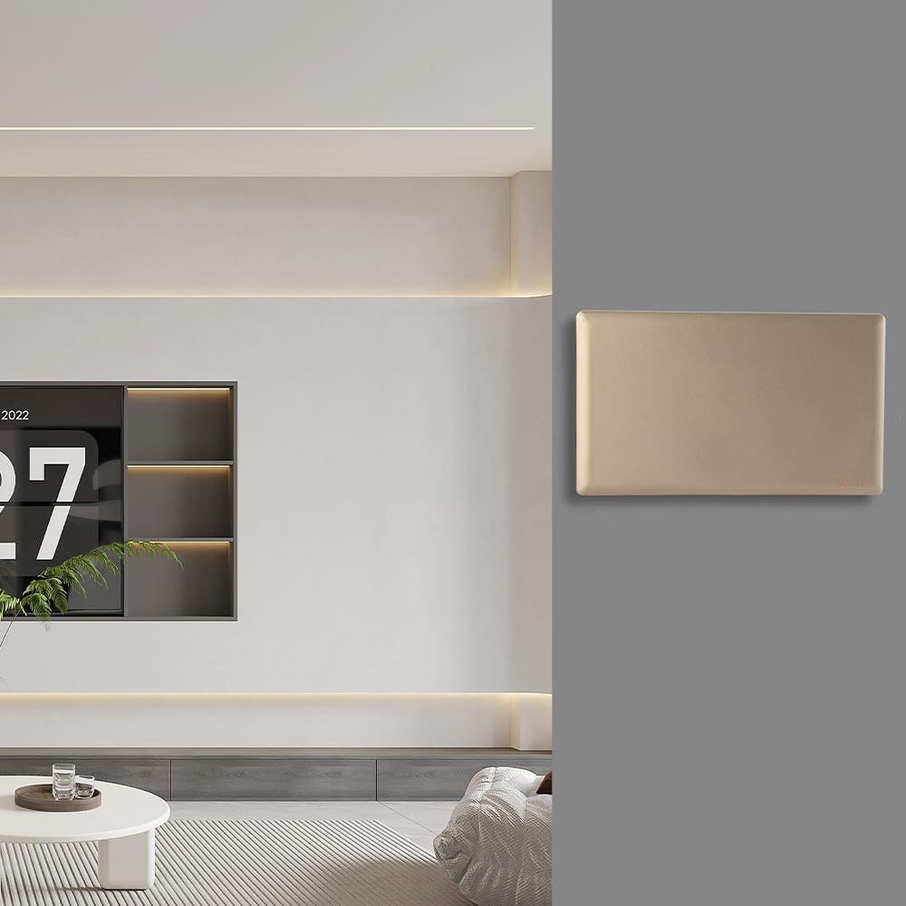مصنوع من خامات عالية الجودة تشمل الحديد، النحاس، ومواد PC المقاومة للاشتعال، مما يضمن له المتانة، السلامة، ومقاومة التلف. يتميز بسُمك نحيف لا يتجاوز 13 ملم، ليضفي على الجدران جمالاً إضافياً دون أي بروز أو ازدحام.
