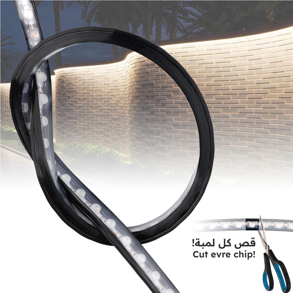 يتميز شريط الليد بتقنيات متقدمة توفر إضاءة قوية ومتساوية، بفضل احتوائه على 42 لمبة لكل متر، مما يضمن تغطية واسعة وإضاءة متجانسة لجميع المساحات الخارجية.