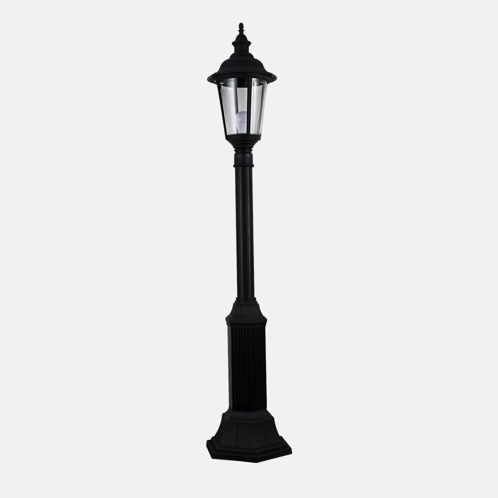 فانوس عمود 1 متر اسود يناسب ديكورات المساحات الخارجية الصغيرة، و ينيرها بشكل أكثر تركيزًا.