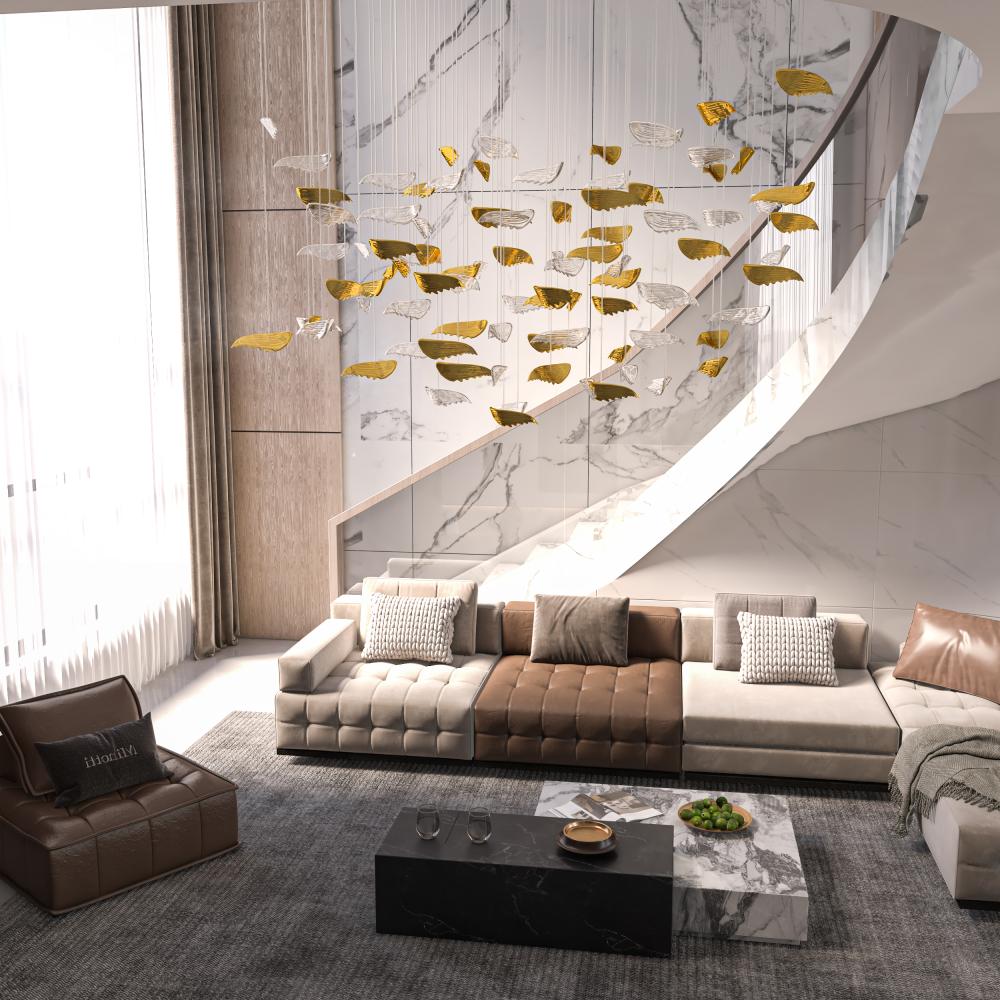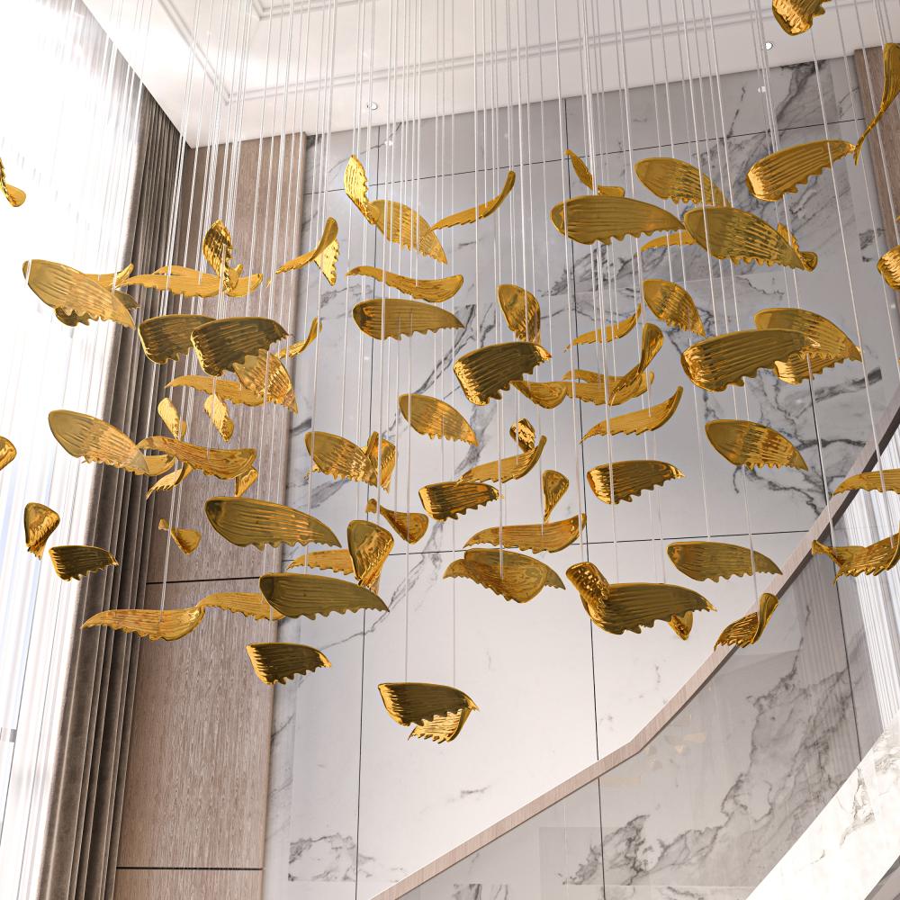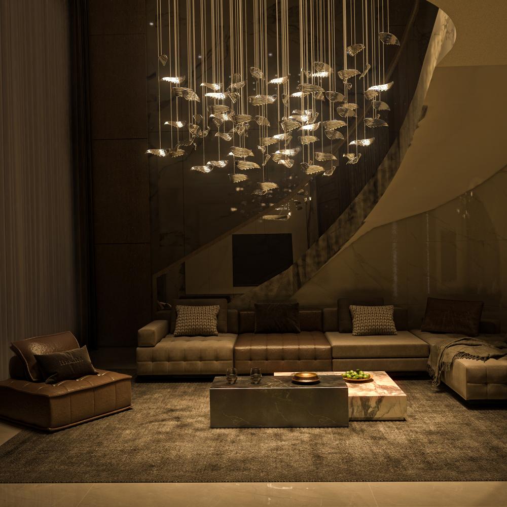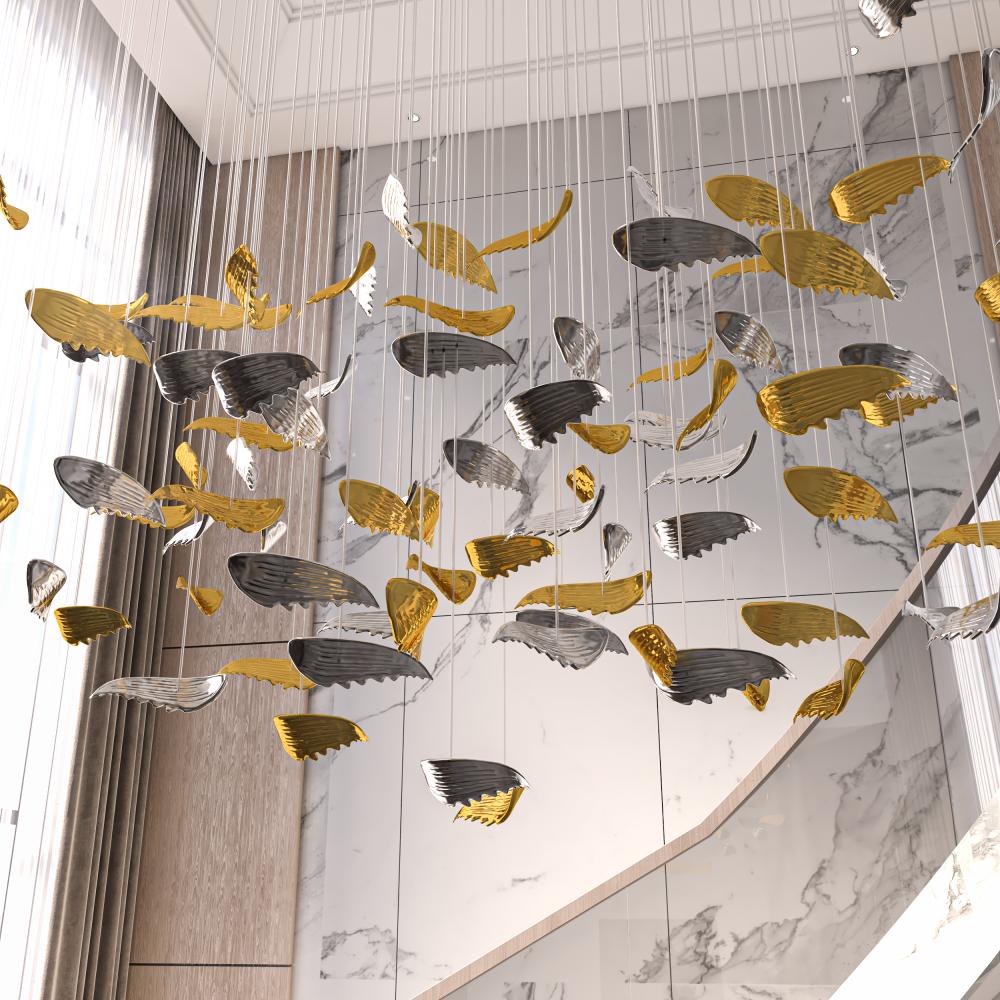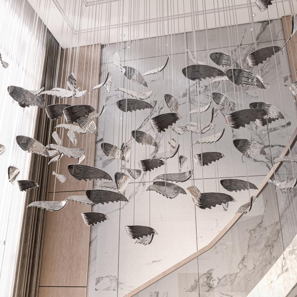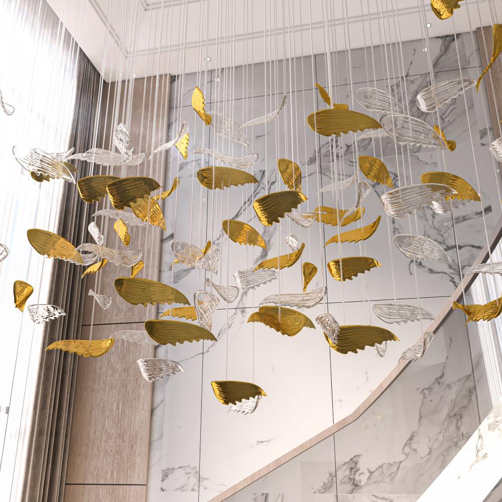 قطع كريستال معلقة تشبه الأجنحة لأفخم القصور والفيلات وقاعات الفنادق، تستخدم لتكوين أسقف ديكورية مضيئة وثريات فخمة تليق بالذوق العالي.
