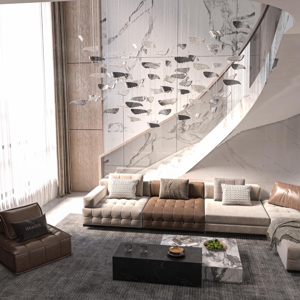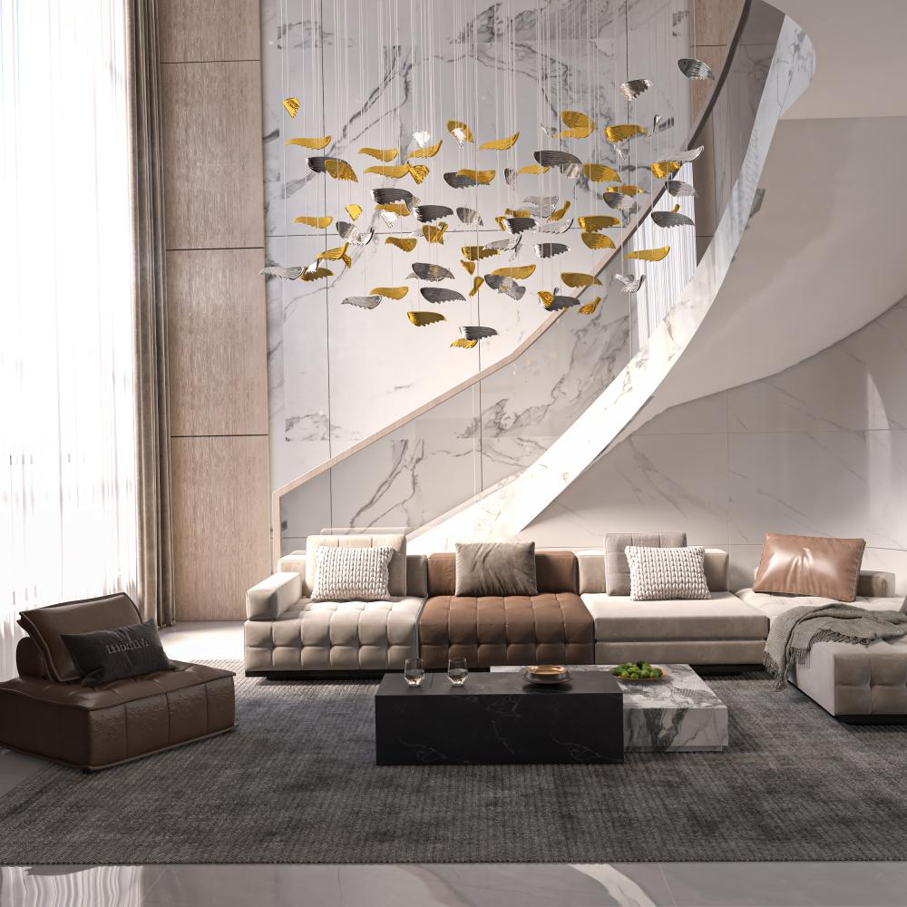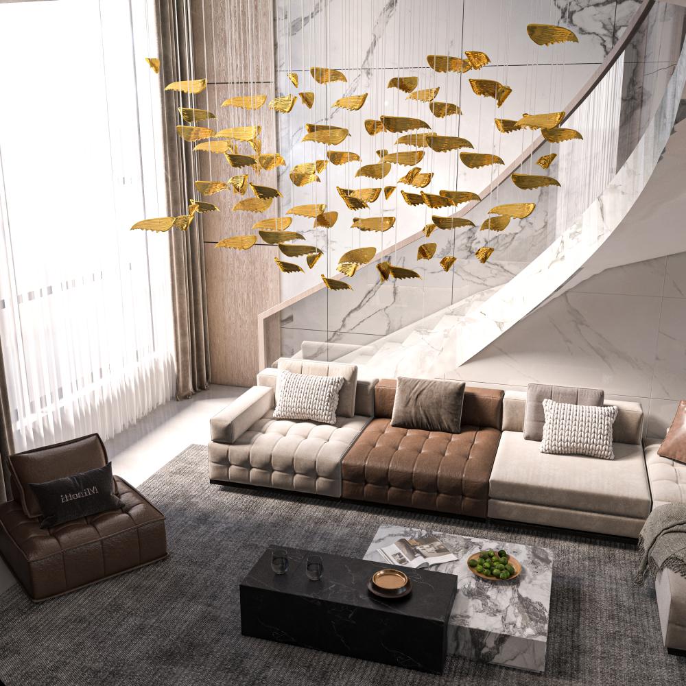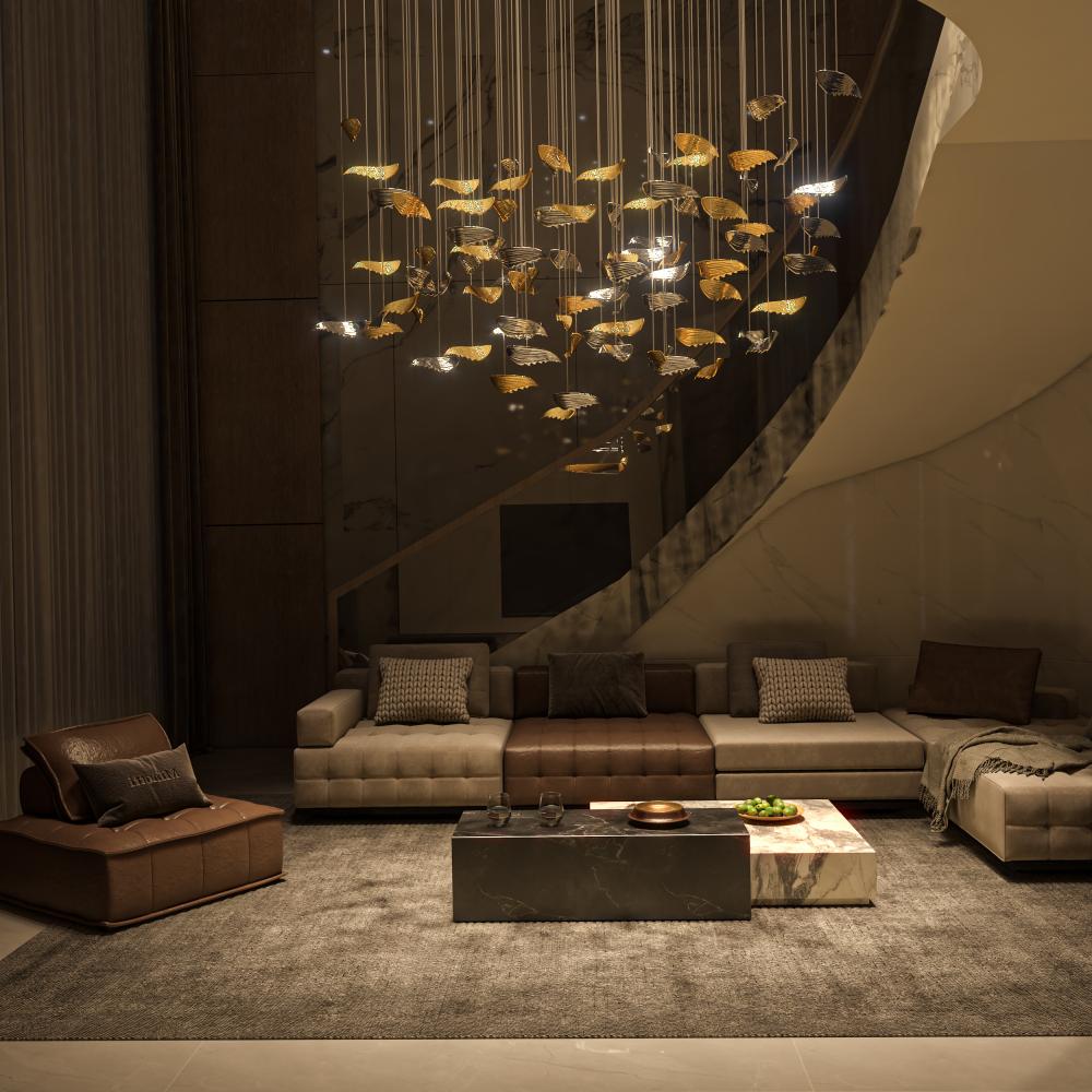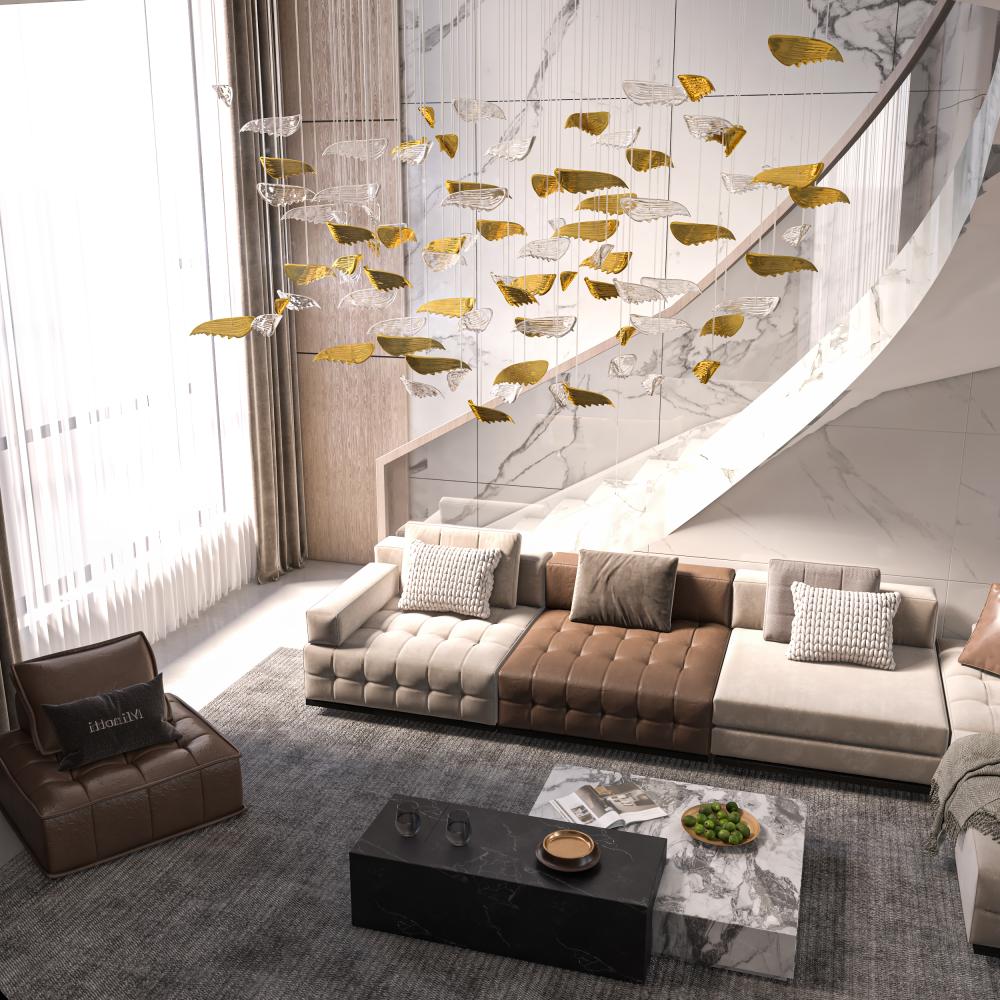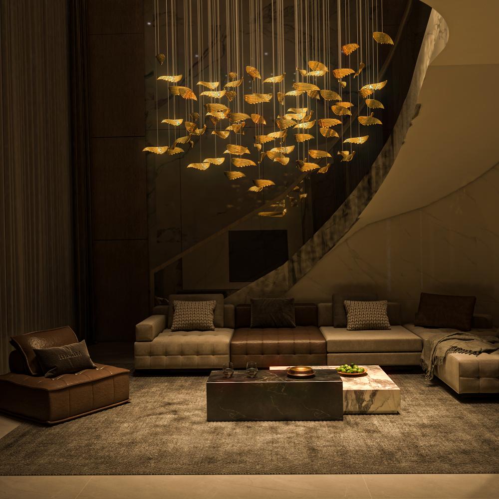 قطع كريستال معلقة تشبه الأجنحة لأفخم القصور والفيلات وقاعات الفنادق، تستخدم لتكوين أسقف ديكورية مضيئة وثريات فخمة تليق بالذوق العالي.