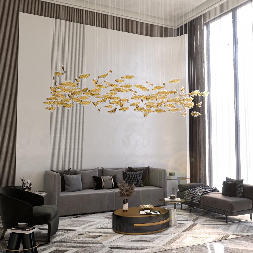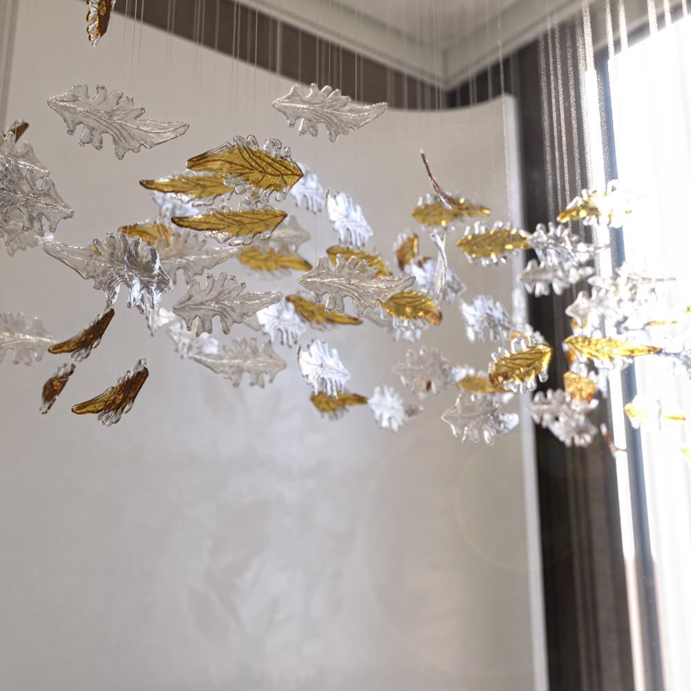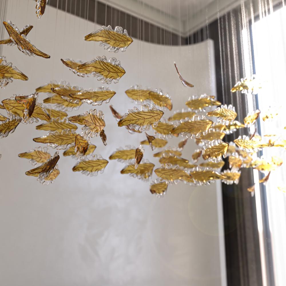 اقتني قطع من الكريستال للتعليق بشكل ورق شجر مميز لتزيين سقف المجالس والقاعات الراقية.
