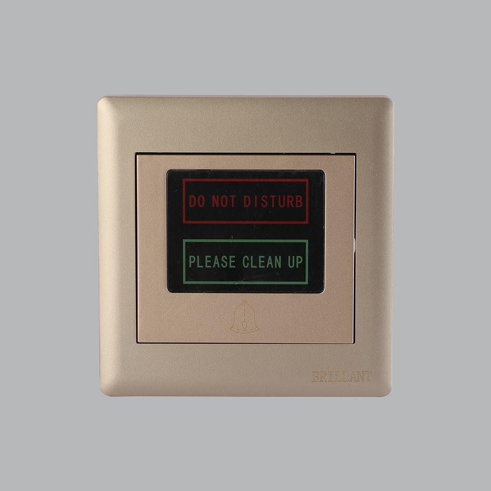 مفتاح جرس ذهبي مطور لرفاهية الاستخدام، يتميز بنحافة وعصرية مع مؤشرات مضيئة لعدم الإزعاج ولتنظيف الغرفة، مع جودة تصنيع عالية تليق بالفنادق والشركات.