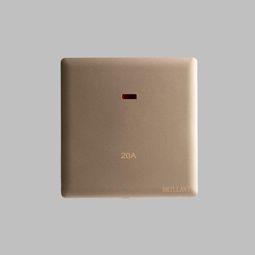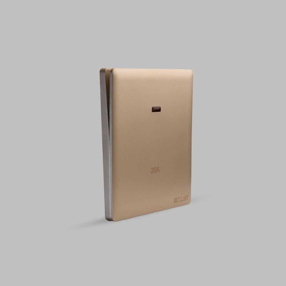 مفتاح سخانة 20 A ذهبي لايت برلنت تصميم مودرن، مع لون ذهبي يتماشى مع معظم الديكورات في المنازل الحديثة.