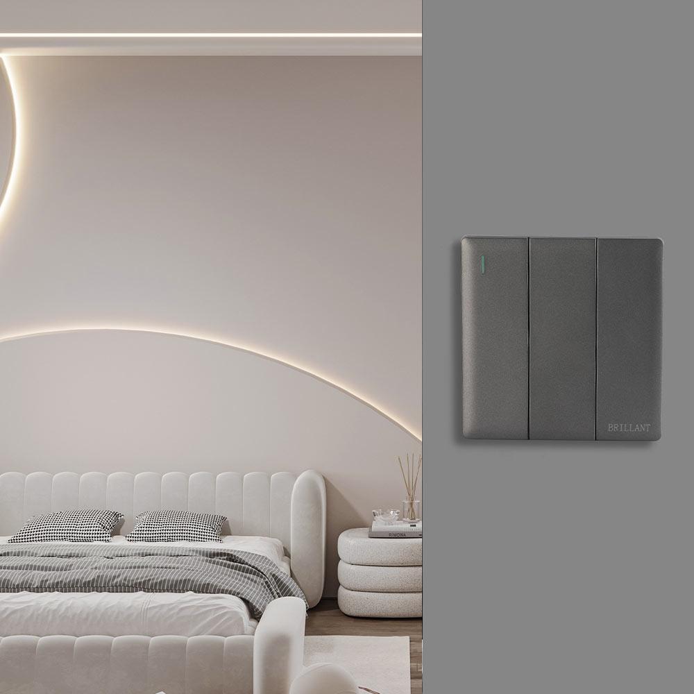 اطلب الآن التصميم الحديث من مفتاح كهرب دركسون ثلاثي رمادي لايت برلنت بضمان 25 سنة.