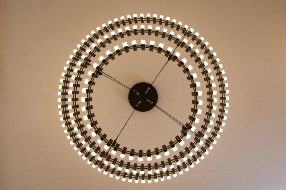 إليك تصميم حديث من ثريات مودرن شكل دوائر من الخيوط المضيئة بثلاث طبقات من الإضاءة التي تعطي إشراقة أكثر للمكان وتبرز القيمة الجمالية للديكورات المنزلية.
