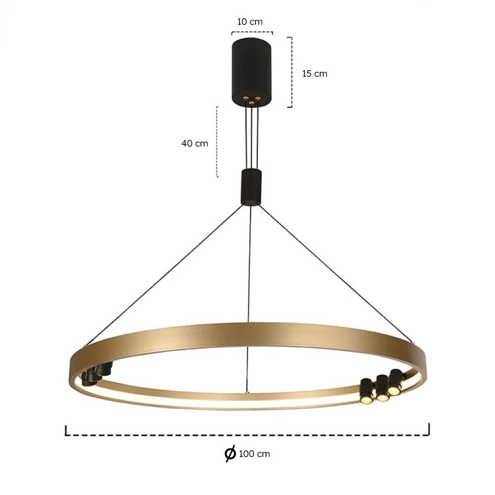 Modern Gold LED Ring Chandelier (100cm) from Fanos. Featuring a premium aluminum and silicone construction with a golden finish, this chandelier delivers warm and elegant illumination for modern interiors.