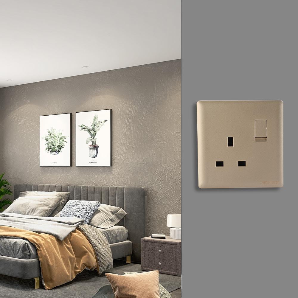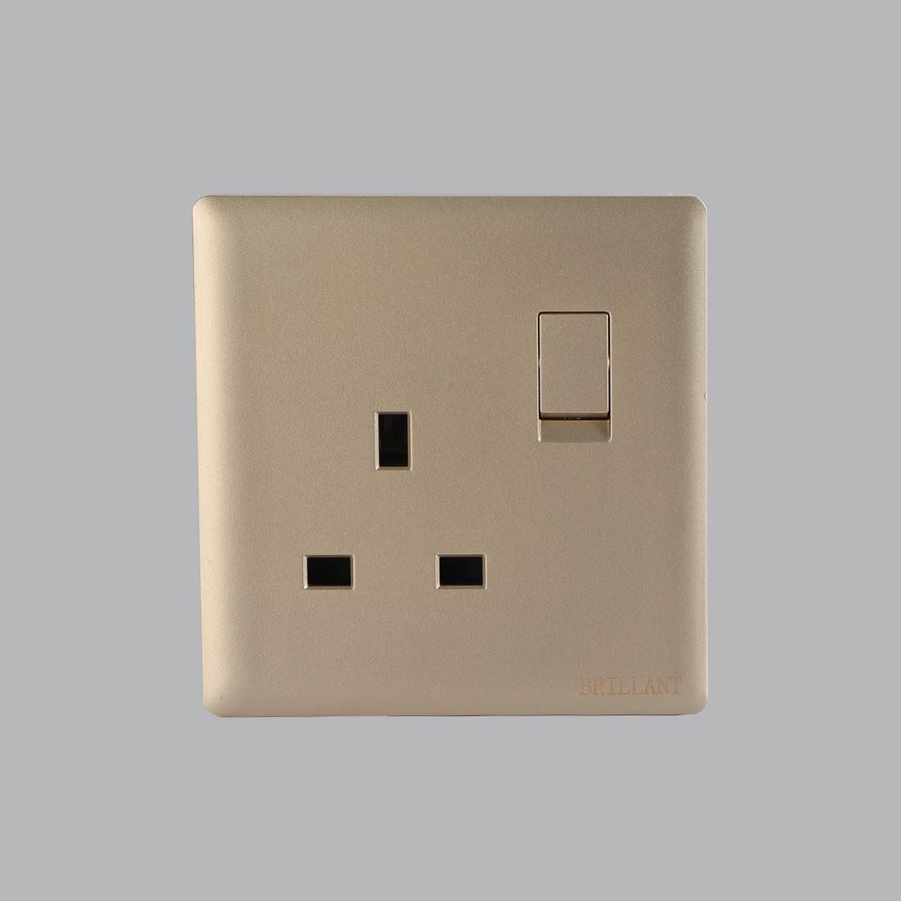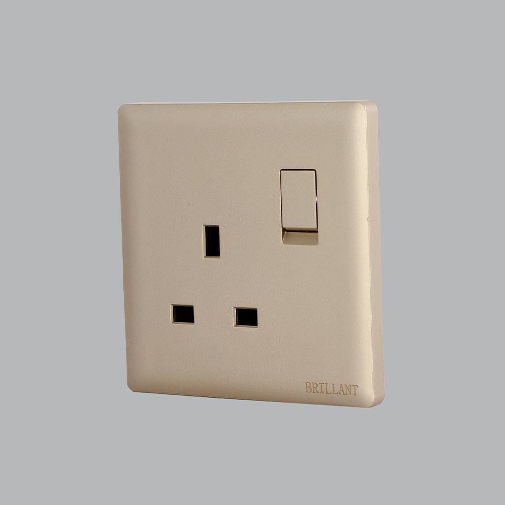 The Brillant Light Single 13A Socket with Switch in Gold Finish is a perfect addition to modern interiors, combining functionality with elegant design. Its slim 3.5 mm profile enhances wall aesthetics, making it suitable for both contemporary and classic décor.