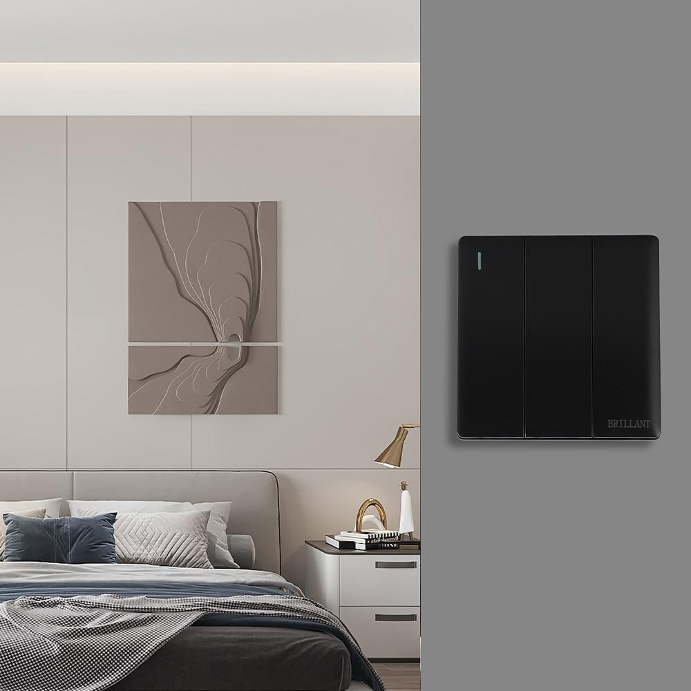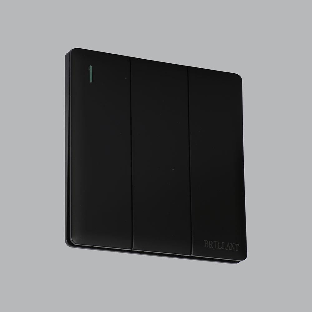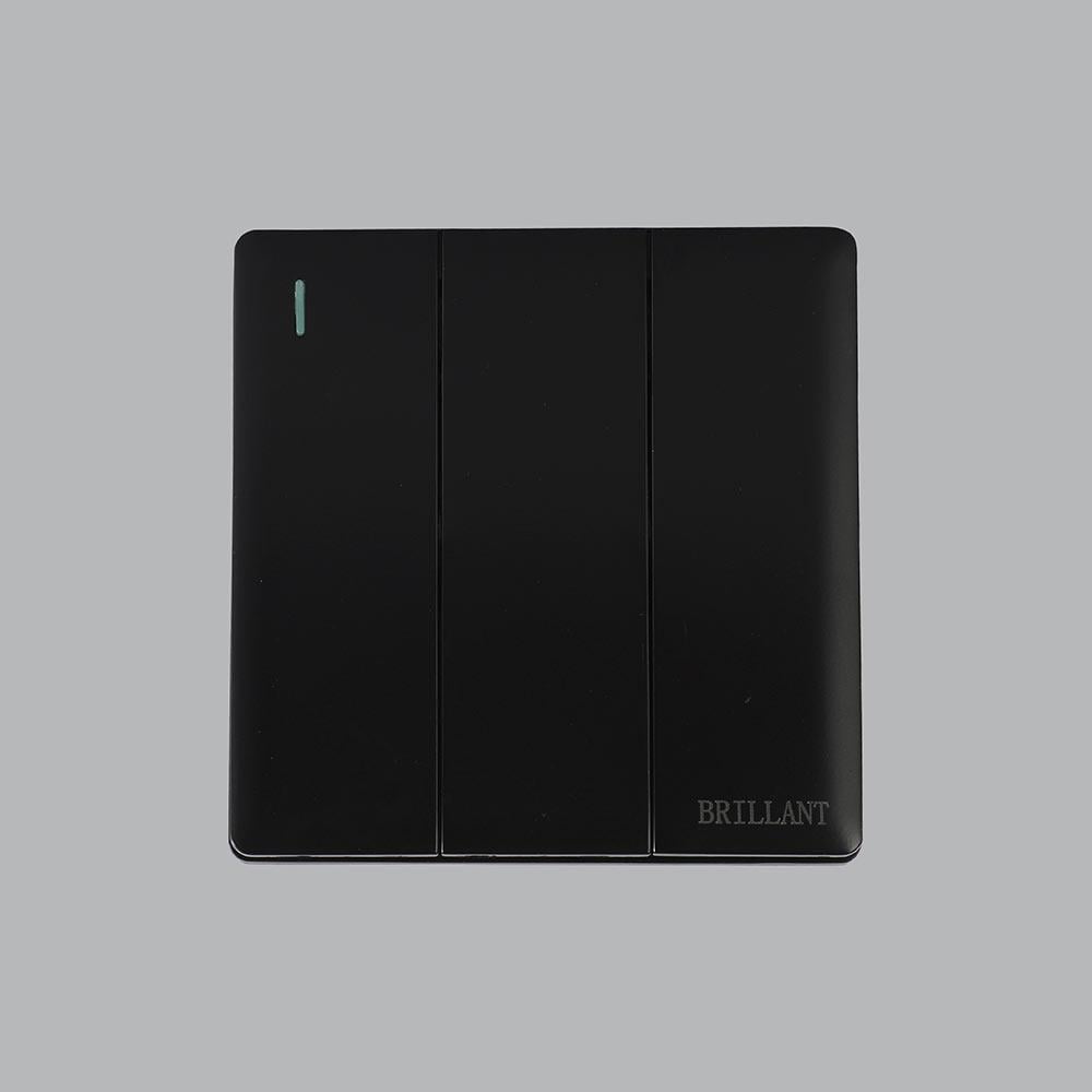 أجود مفتاح كهرب ثلاثي لتشطيبات الفلل والمشاريع، يمتلك تصميم عالي النحافة ولون أسود فخم يفضله مهندسين الديكور مع دهانات الجدران المتنوعة والأثاث المودرن.