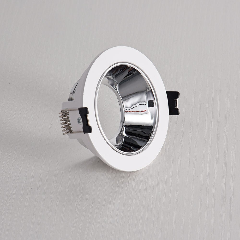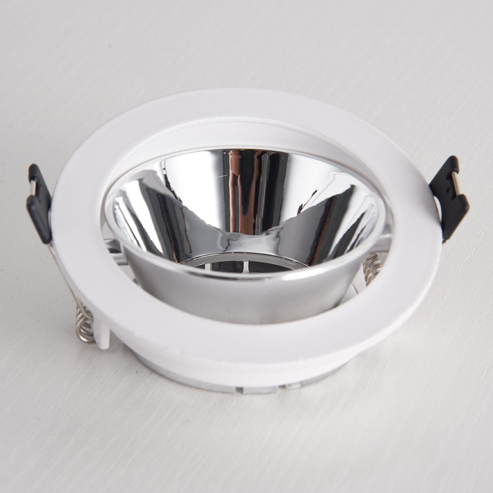 Fanos spotlight base features a silver reflector to reduce harsh glare and create uniform ceiling lighting. Eye-friendly lighting and ideal for modern interiors, seating areas, guest reception rooms, and spacious living halls.