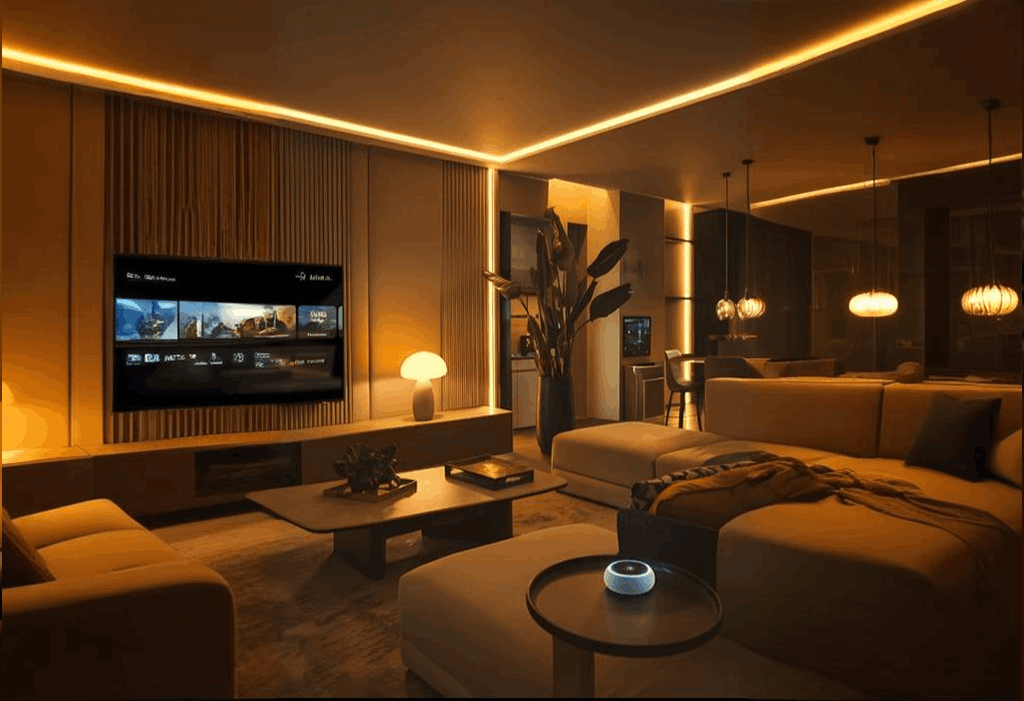 Examples: Spotlights, hidden LED strips, and backlighting behind TVs or shelves.
