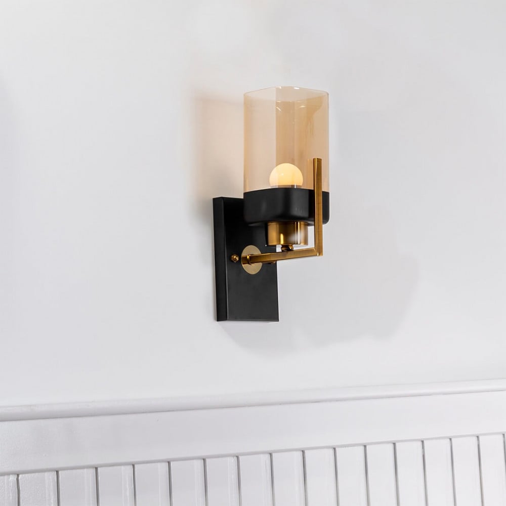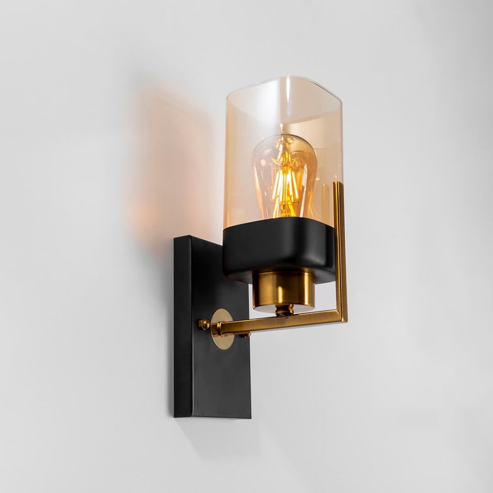 A classic single applique with a dark brown base and black-golden-hazel glass arm Size: Width:10 * Length: 30 * Depth: 15 cm Bulb type: E27