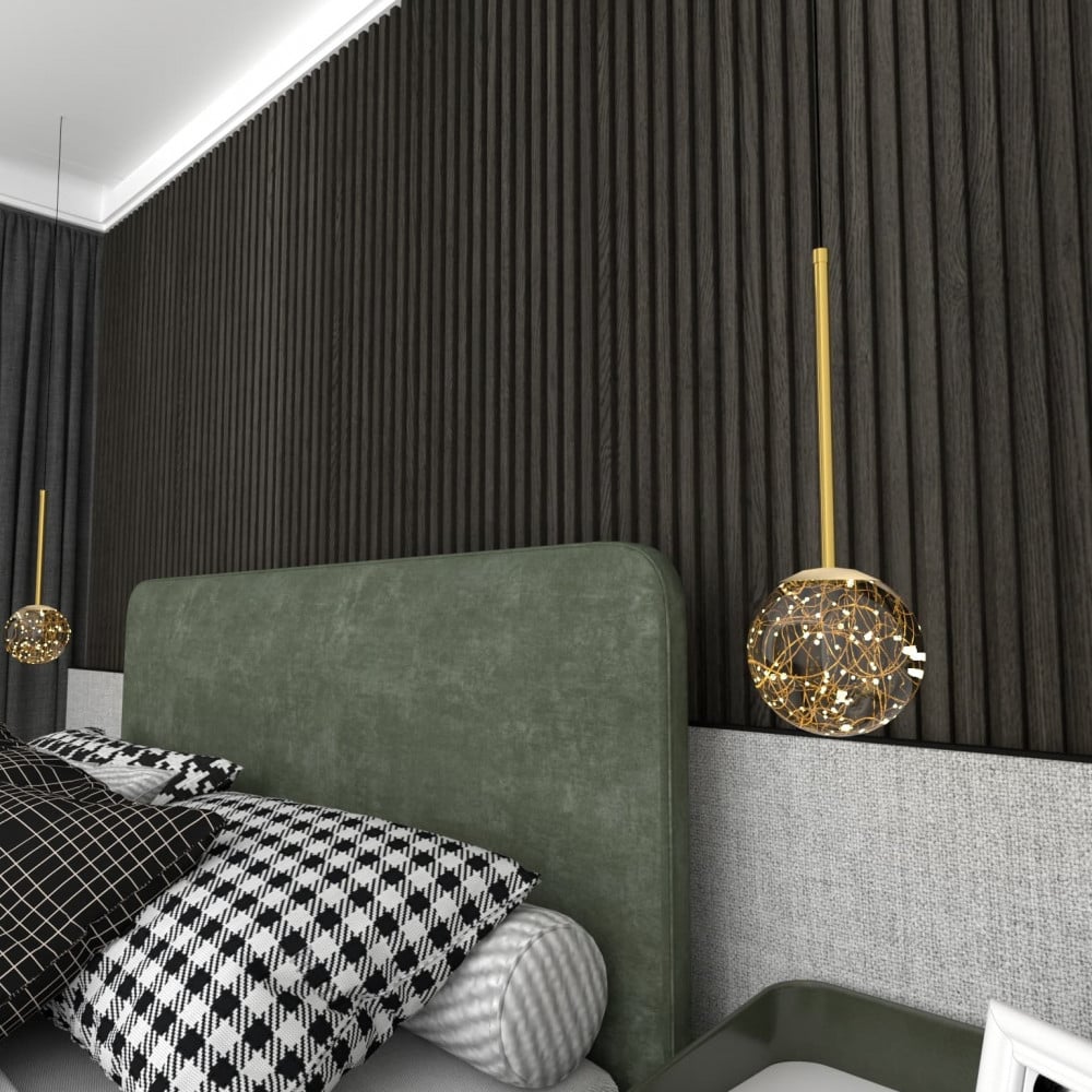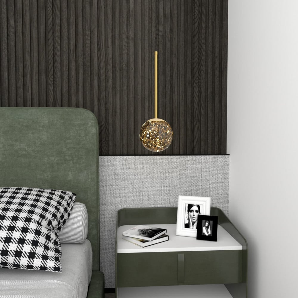 As shown in the corresponding pictures, a pair of single golden chandeliers with LED lights can be hung on the ceiling, hanging on the sides of the bed, for a romantic and poetic look filled with warm lighting. This unique chandelier is also suitable for luxury hotels that seek to attract attention by using the latest and most beautiful lighting to transform the place visually and aesthetically.