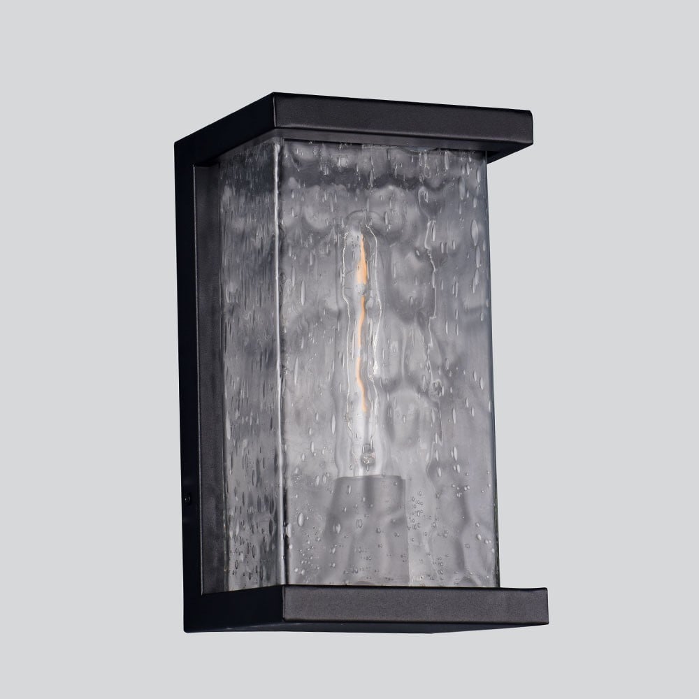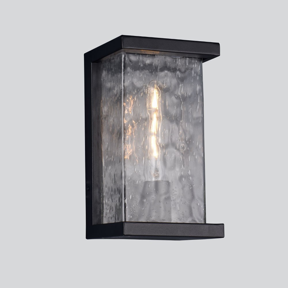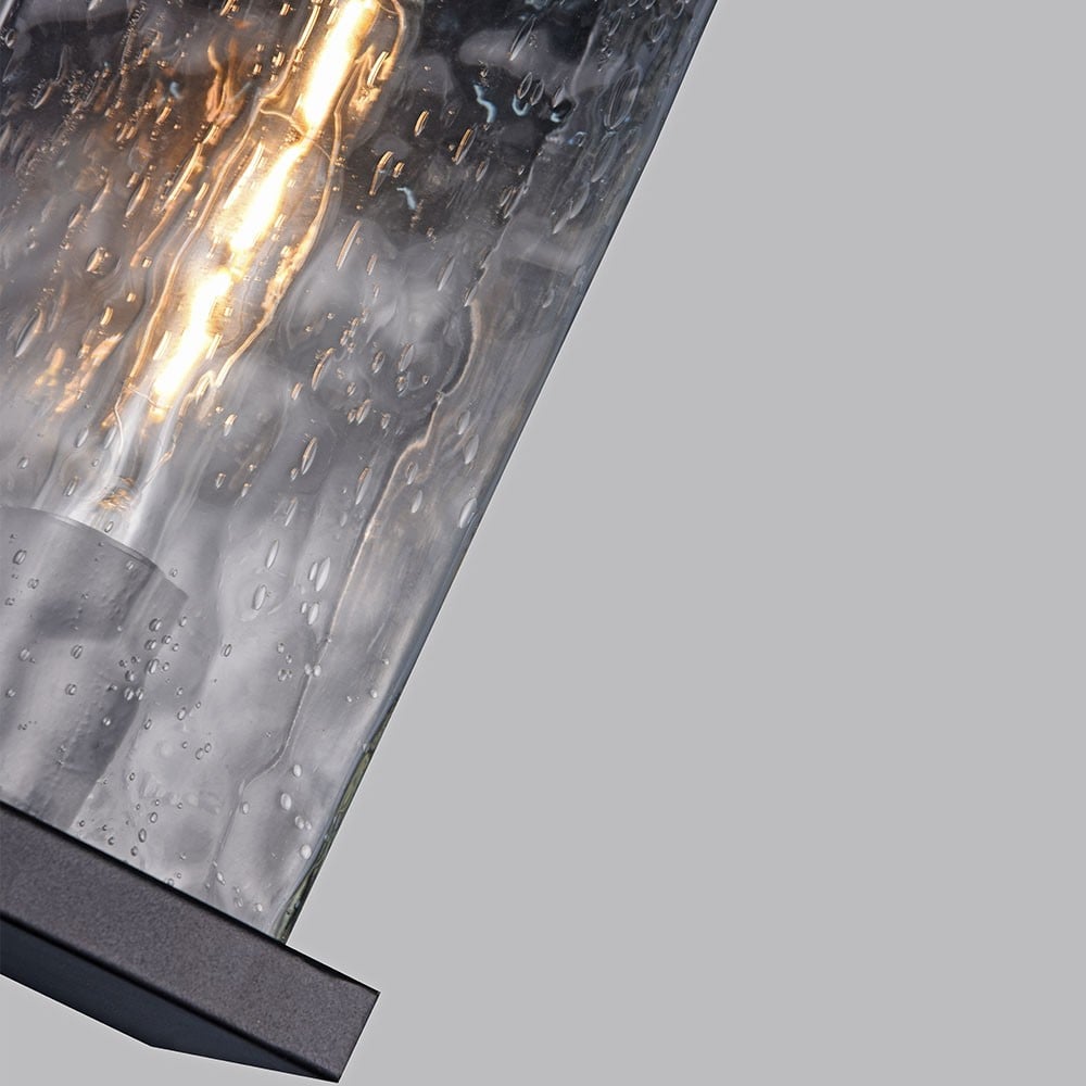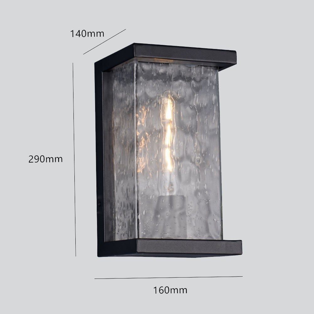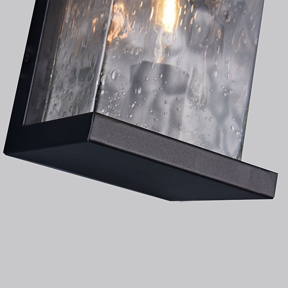 Illuminate the exterior space of your home with a modern Raindrops Black Rectangular Outdoor Lantern, E27. Our stylish rectangular lantern features attractive grey glass with a raindrop pattern, blending functionality with aesthetic appeal.