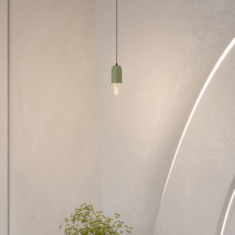 علاقي إنارة مفرد اسمنتي بتصميم عصري بسيط يناسب ديكورات المطاعم والمطابخ العصرية، بملمس أسمنتي أنيق يضفي طابعًا صناعيًا حديثًا ويُركّب عليه لمبة ليد من نوع E27 موفرة للطاقة.